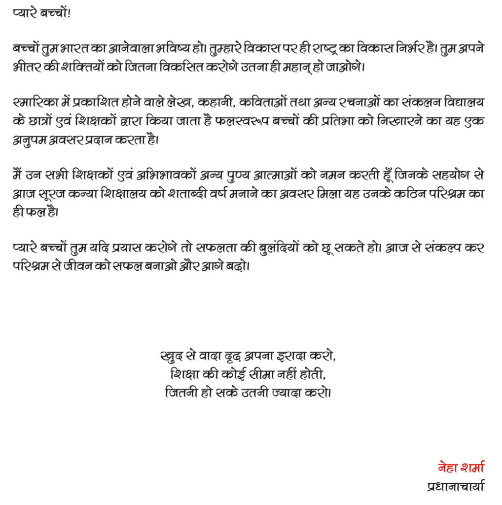 Our mission at Suraj Kanya Shikshalaya is to inspire lifelong learning, foster creativity, and cultivate a nurturing environment where students can thrive academically, socially, and emotionally. Through innovative teaching methods and a commitment to excellence, we empower students to become responsible global citizens equipped to face the challenges of the future.